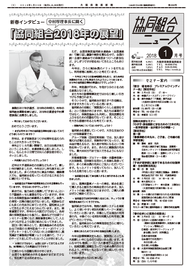 2018年新春を迎え、中村厚理事長に昨年の協同組合運動と2018年の展望をお伺いしました。 2018年新春を迎え、中村厚理事長に昨年の協同組合運動と2018年の展望をお伺いしました。 紙面をダウンロード 前へ 一覧に戻る 次へ