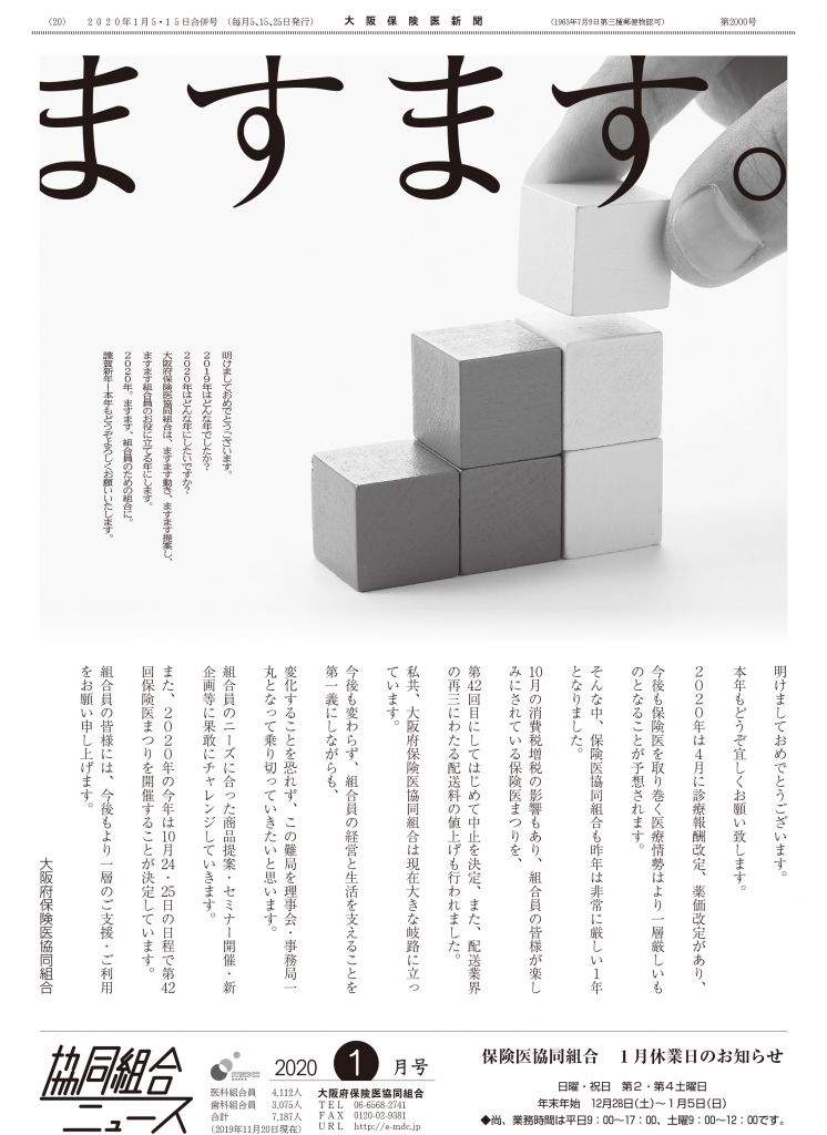 新年あけましておめでとうございます。 新年あけましておめでとうございます。 新年号は、旅行企画「竹田城ツアー」と医師・歯科医師の「婚活パーティー」の報告です。 紙面をダウンロード 前へ 一覧に戻る 次へ