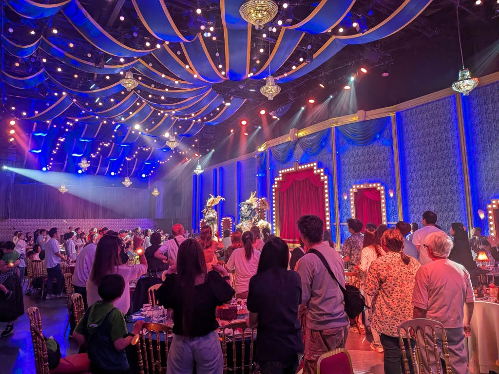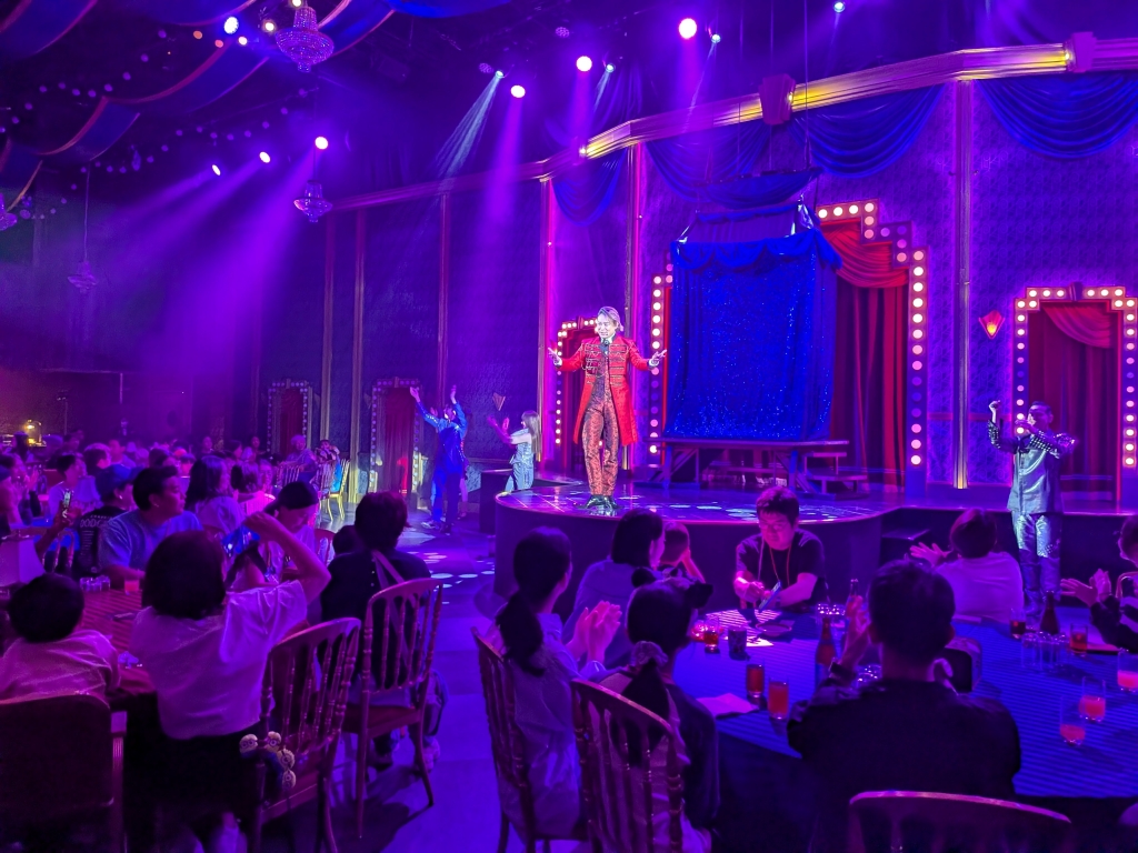 当日は、組合員・会員とそのご家族、医院スタッフの皆さまを対象に、通常は体験できない専用会場でのプレミアムパーティーをご用意。華やかなショーとともに、ビュッフェ料理やフリードリンクを楽しみながら、特別なひとときをお過ごしいただきました。観客参加型の演出もあり、会場は終始笑顔と歓声に包まれていました。