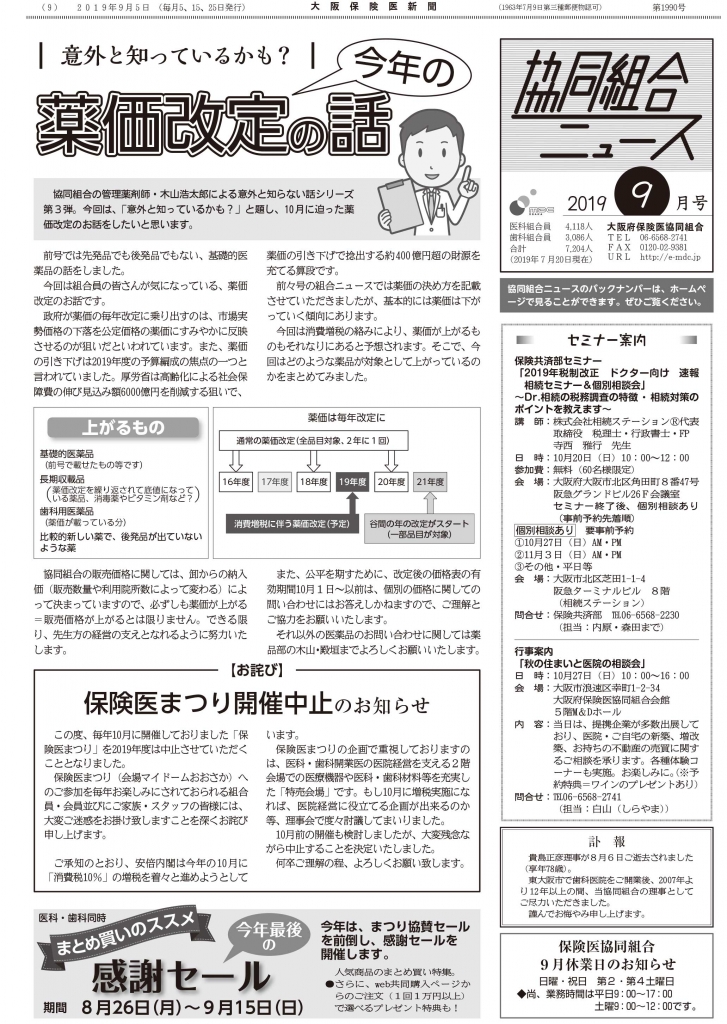 今号は「今年の薬価改定」についての特集です。