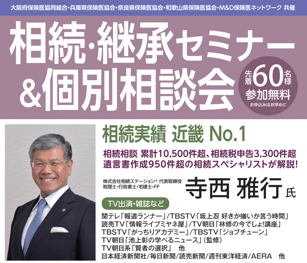 2026年5月31日(日)恒例の寺西税理士による相続・継承 セミナーを開催します。